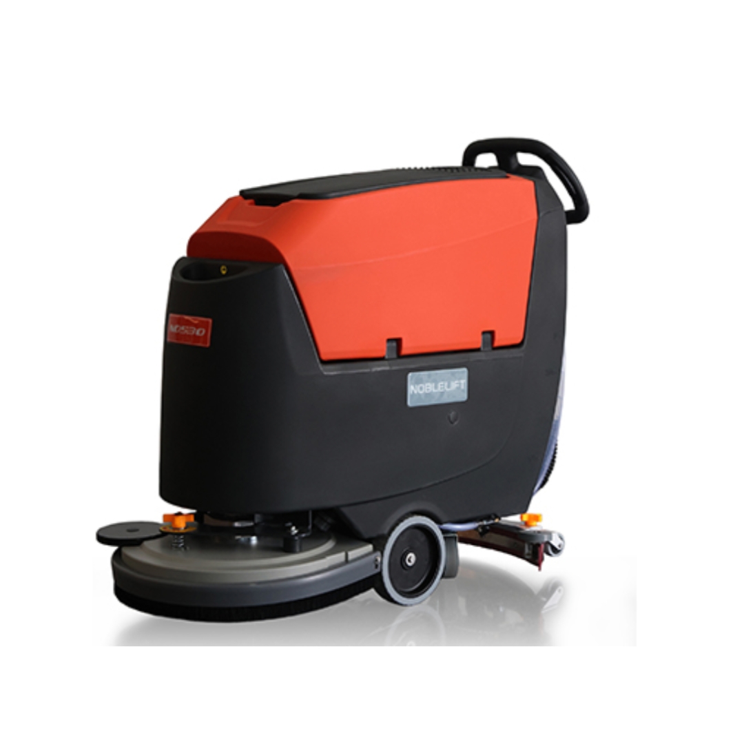 La Noblelift ND530 es una fregadora autopropulsada (Self-propelled power Scrubber) con una ruta de limpieza de 530 mm, diseñada para maximizar la productividad sin esfuerzo físico excesivo. A diferencia de los modelos manuales, su motor de tracción permite que la máquina avance por sí sola, facilitando la limpieza en superficies con ligeras pendientes o pasillos largos. Cuenta con un panel de control digital que permite monitorear el estado de la batería y las horas de uso. Su sistema de cepillo circular es altamente efectivo para desincrustar suciedad pesada en una sola pasada. Es ideal para instalaciones industriales de mediano tamaño y grandes superficies comerciales donde se busca optimizar el rendimiento del personal de limpieza mediante tecnología avanzada y ergonomía de alto nivel.