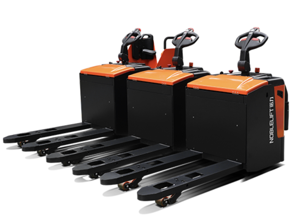 El Noblelift PPK es un patín eléctrico de alta velocidad con plataforma para el operador, disponible en capacidades de 2000 kg, 2500 kg y 3000 kg. Este equipo utiliza tecnología de Litio de alto rendimiento para soportar aplicaciones de transporte de larga distancia en grandes centros logísticos. Su plataforma plegable y brazos de protección lateral permiten al operador viajar de forma segura y cómoda a velocidades superiores a las de un patín convencional. La suspensión en la plataforma absorbe las vibraciones del suelo, protegiendo la salud del trabajador. Cuenta con motores AC potentes que ofrecen una aceleración rápida y un frenado regenerativo eficiente. Es la herramienta definitiva para maximizar la productividad en almacenes de gran superficie donde el tiempo de traslado entre muelles de carga es un factor crítico.