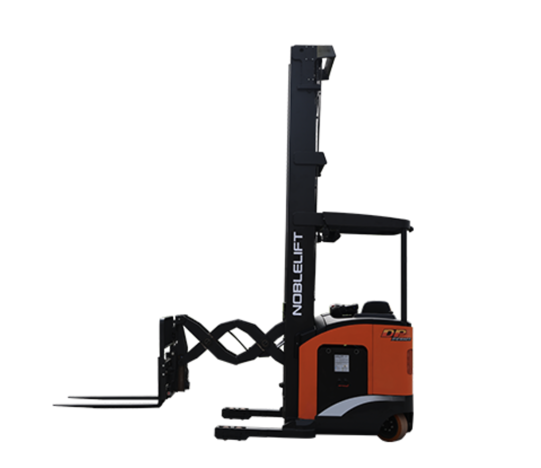 La serie RT15/20SP y RT15DP de Noblelift incluye carretillas retráctiles “Stand-on” con sistema de tijera (Scissor Reach), disponibles en configuraciones de profundidad simple (SP) o doble (DP). Con capacidades de 1500 kg a 2000 kg, estas máquinas están diseñadas para maximizar la densidad de almacenamiento permitiendo el acceso a pallets en estanterías de doble profundidad. El mecanismo de tijera es robusto y ofrece un posicionamiento preciso, mientras que los motores AC de alto torque manejan la carga con facilidad. La seguridad se refuerza con controles proporcionales para la elevación y el alcance, permitiendo movimientos finos. Es el equipo definitivo para almacenes que buscan reducir el número de pasillos y aumentar significativamente su capacidad de almacenamiento sin expandir el área física.